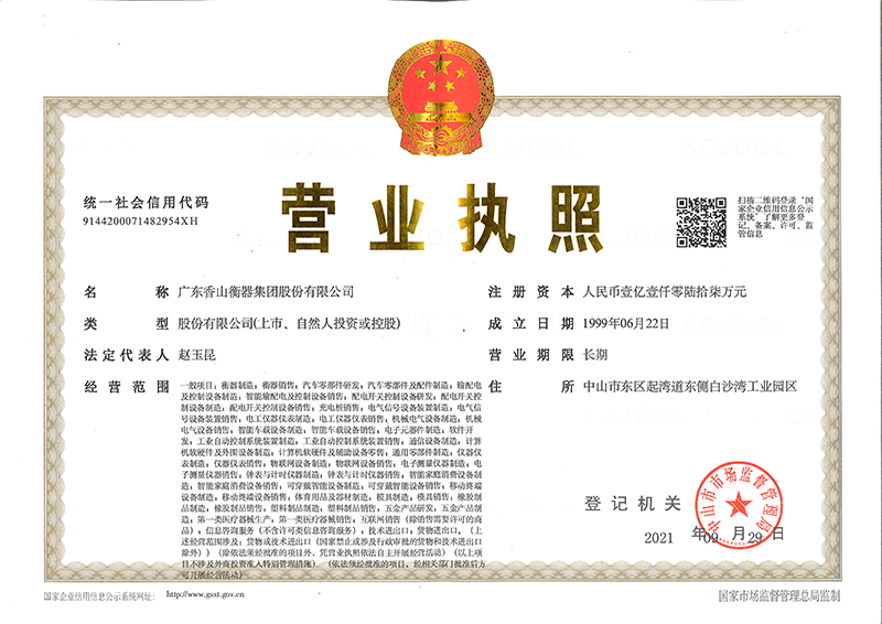 香山衡器集團(tuán)營(yíng)業(yè)執(zhí)照