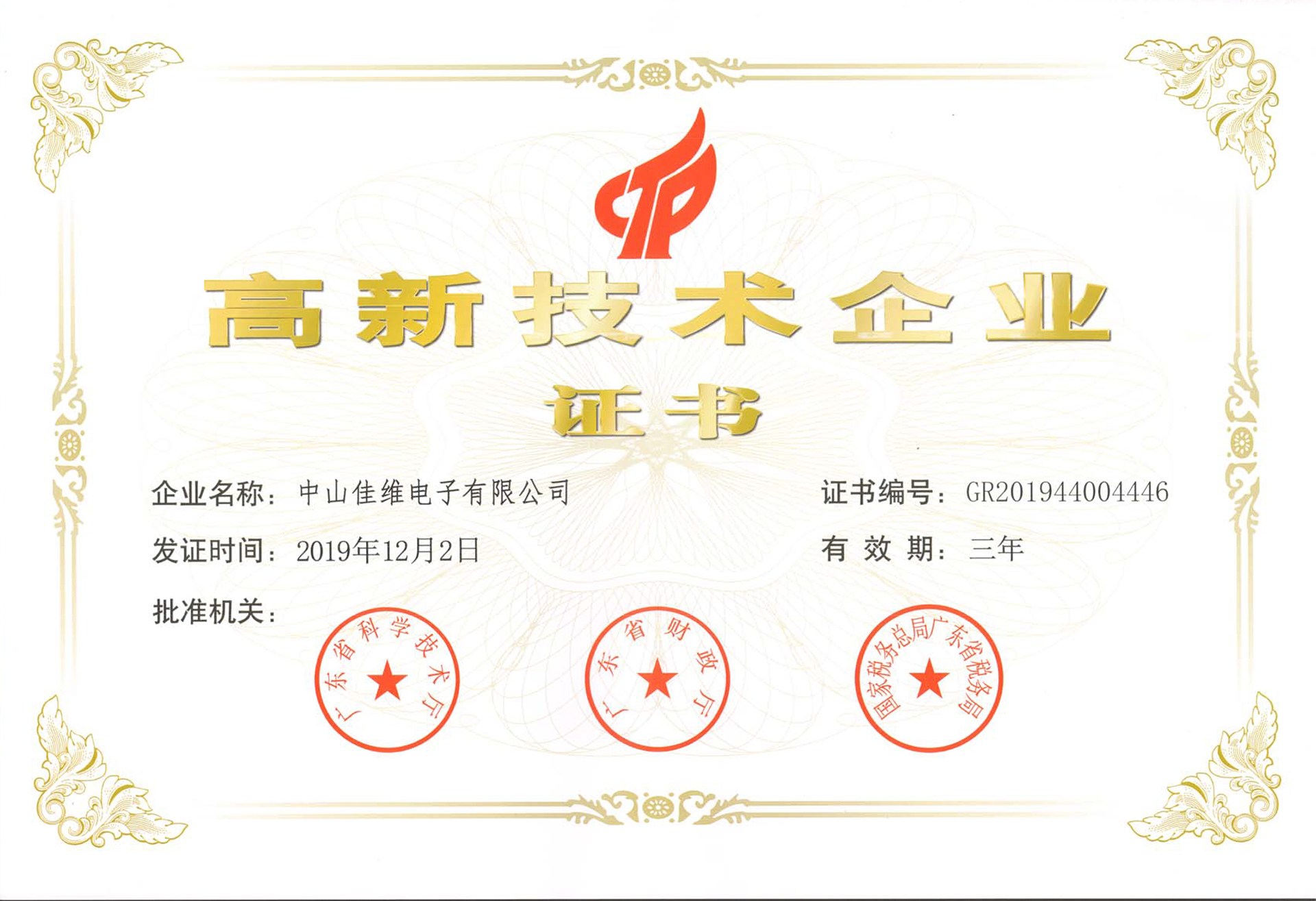 高新技術(shù)企業(yè)證書