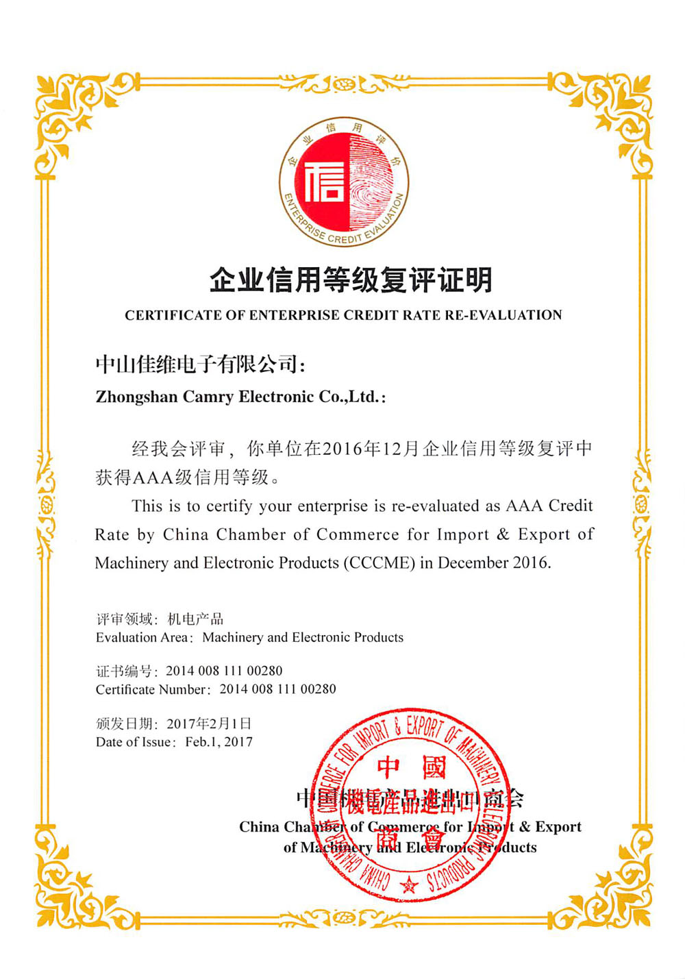 佳維企業(yè)信用等級(jí)復(fù)評(píng)證明